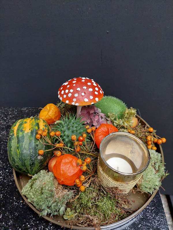 Herfstschaal klein met waxinelichthouder